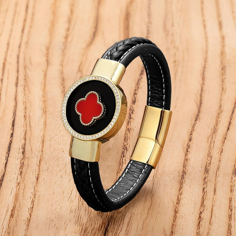 Men's black leather bracelet with green jade beads and magnetic clasp. Multi-layer design for casual style. Durable, elegant jewelry. Shop now! (136 characters)