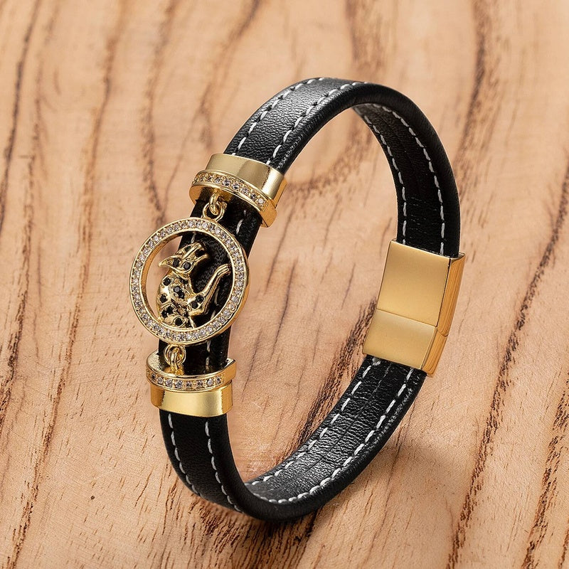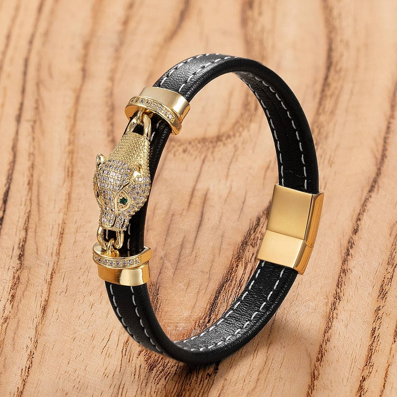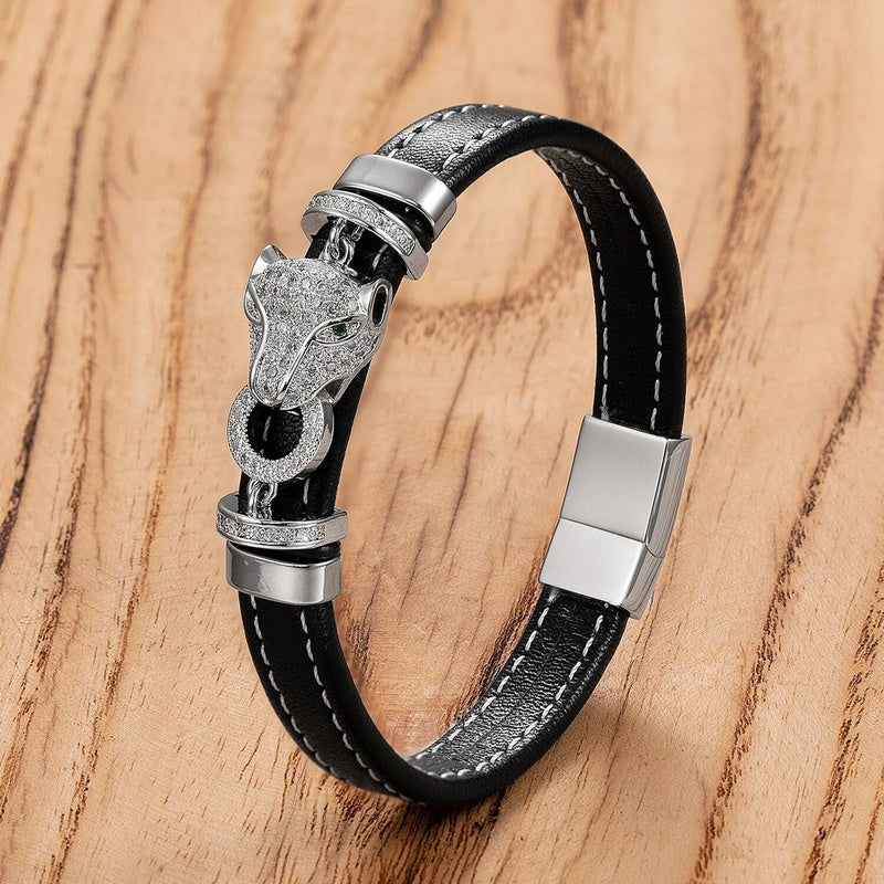 Men's black leather bracelet with green jade beads and magnetic clasp. Multi-layer design for casual style. Durable, elegant jewelry. Shop now! (136 characters)