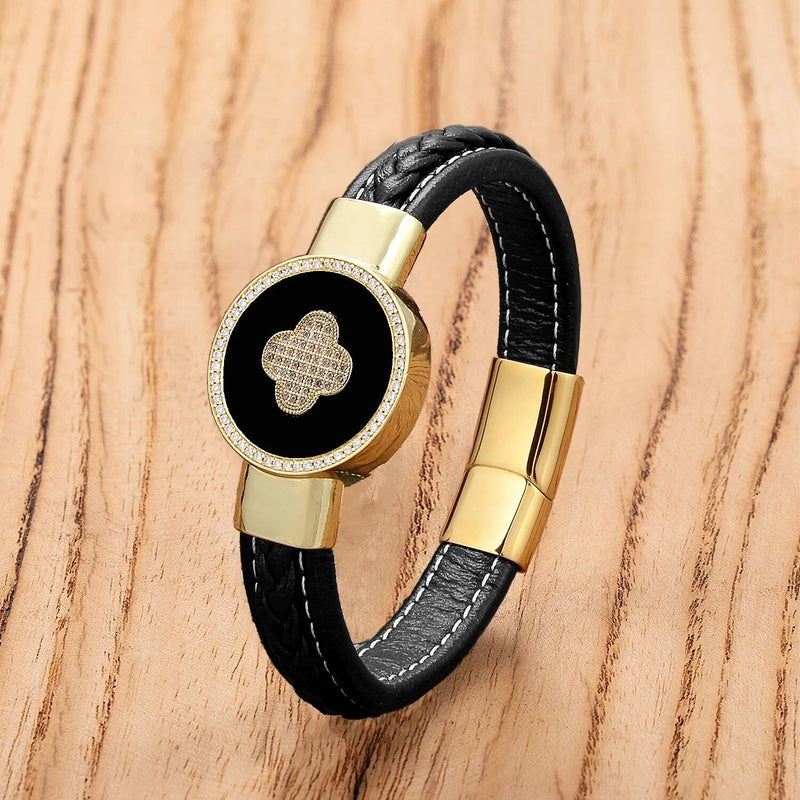 Men's black leather bracelet with green jade beads and magnetic clasp. Multi-layer design for casual style. Durable, elegant jewelry. Shop now! (136 characters)