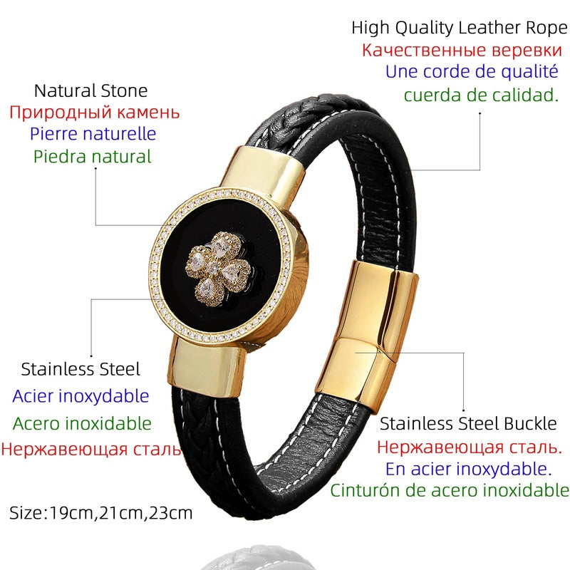 Black Braided Leather Bracelet with Green Jade Beads - Stylish Multi-Layer Magnetic Clasp Jewelry for Casual Wear and Gifts