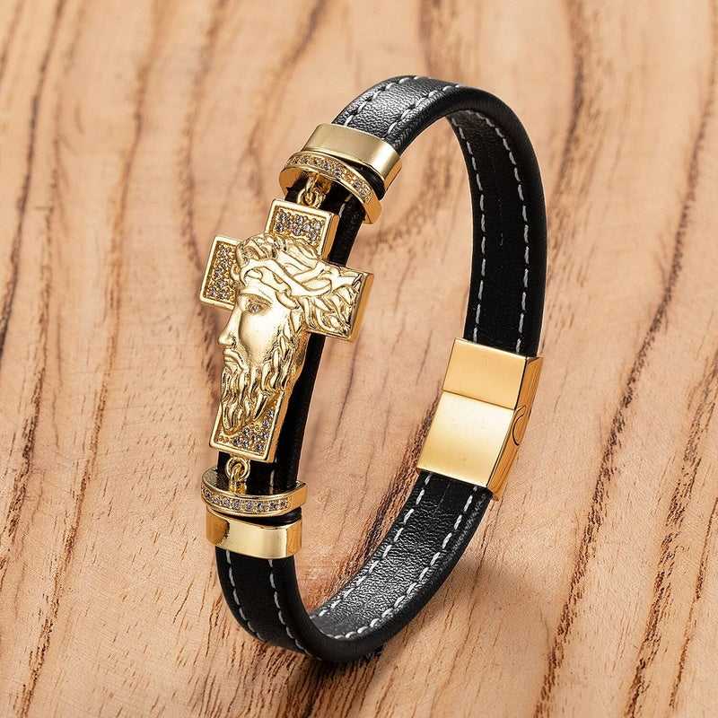 Men's black leather bracelet with green jade beads and magnetic clasp. Multi-layer design for casual style. Durable, elegant jewelry. Shop now! (136 characters)
