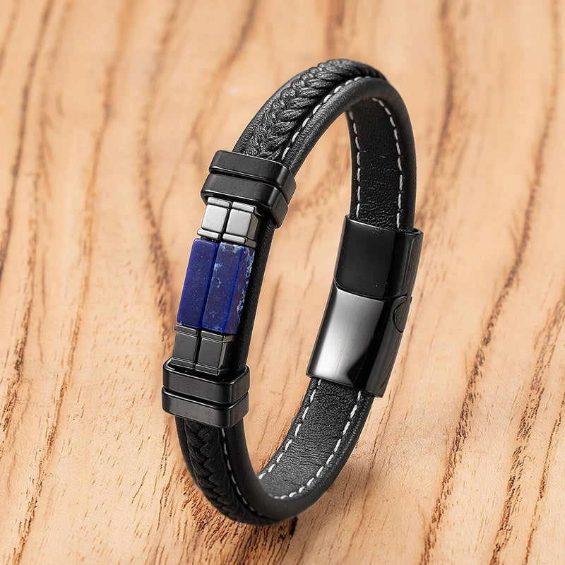 Vintage Woven Leather Rope For Men Personality Stone Bangles Bracelets Punk Stainless Steel Wristband Jewelry Gifts