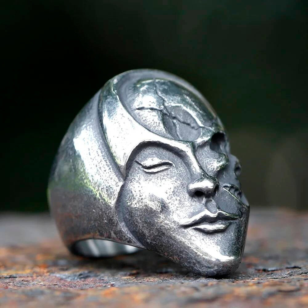 Embrace the balance of opposing forces with the Yin Yang Skull Ring, a profound piece that merges ancient philosophy with Gothic edge. This innovative design features a human skull split between light and dark halves, symbolizing the harmony of dualities: life and death, good and evil, chaos and calm. Crafted from premium 316L stainless steel with contrasting polished and oxidized finishes, this ring is a wearable testament to balance and self-awareness.